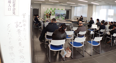 同市の市長定例記者会見は昨年5月から市民が傍聴できるようになった。ただ、会見場所が庁舎3階の大会議室だったため、実際には一般市民にとって入りにくい状況が続いていた。そこで新年第1回となった1月7日の会見は、本庁舎1階の玄関ホール横の多目的室を開放した形で実施。会見を冒頭からすべて傍聴する市民のほか、市役所窓口などに訪れた際に立ち止まって聞き入る市民らの姿が見られた。