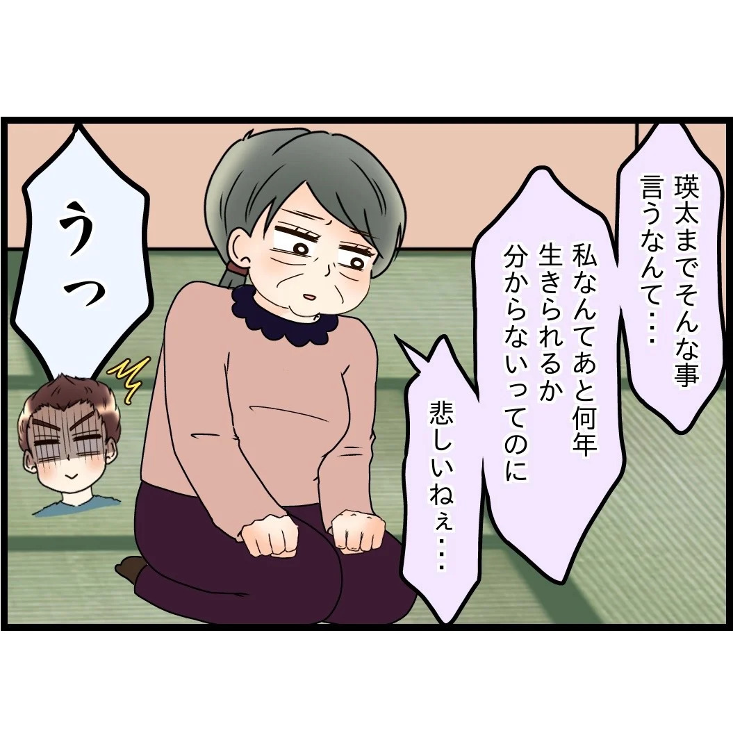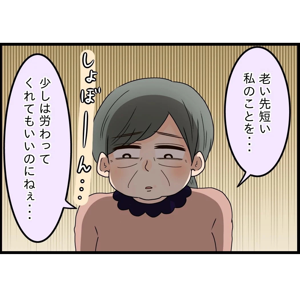 海外へ連れていってほしいと騒ぎ立てていた義母。しかし海外へ行きたいのは本心ではなく、ただ家族から気遣ってほしいのだという。義母は自分の理想とする嫁の姿、そして孫の姿を語りだすのだった…