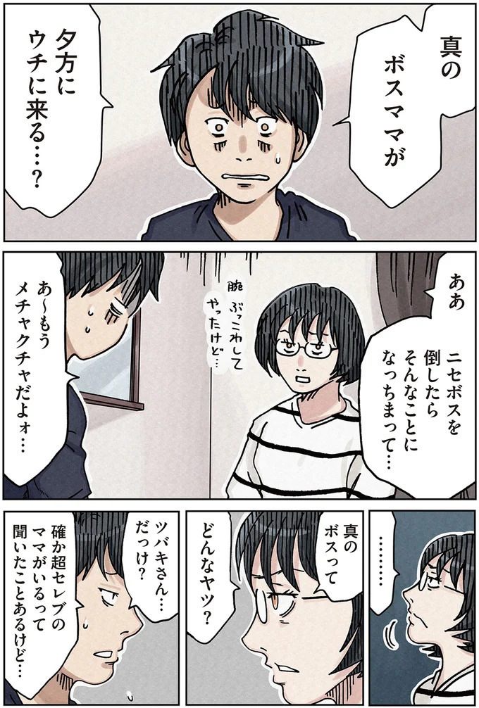 明らかにノバラとは器が違うツバキ。今度は腕相撲で何とかできる相手ではなさそうです。家にまで来られて、誤魔化しきれるのか…