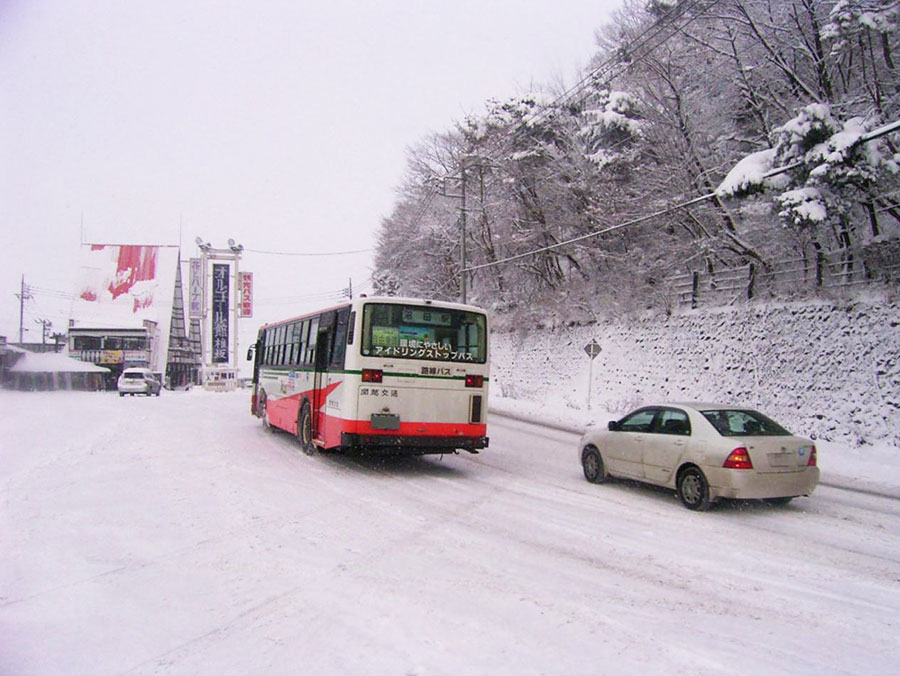 この山並みを越える「椎坂峠」は、沼田市街との標高差が大きく、また谷筋の日陰を急坂で縫うように走ることから、沼田市街や峠の向こうの利根町老神(おいがみ)に雪がなくても、降った雪は道路に残りやすく、またいったん融けた雪も夜間の冷え込みで凍り、道路がアイスバーン状態になることもしばしばでした。