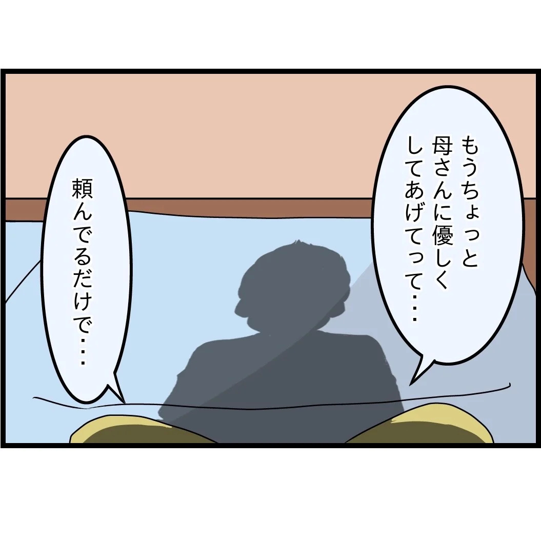 これまでの夫の対応を振り返る妻。嫁姑の喧嘩を見ておろおろしているうちはまだ許せたのだが、見て見ぬふりするようになったのが許せなかったよう。そのうえ義母に泣きつかれると弱い夫のことを“僕ちゃん戦士”だと言い…