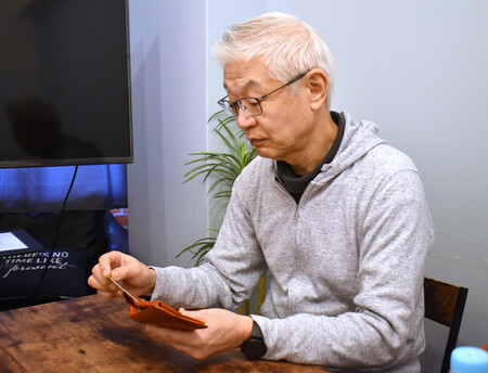 〔写真説明〕軽井沢バス事故で亡くなった長男陸人さんが使っていた財布を手にする大谷慶彦さん=11日、東京都内