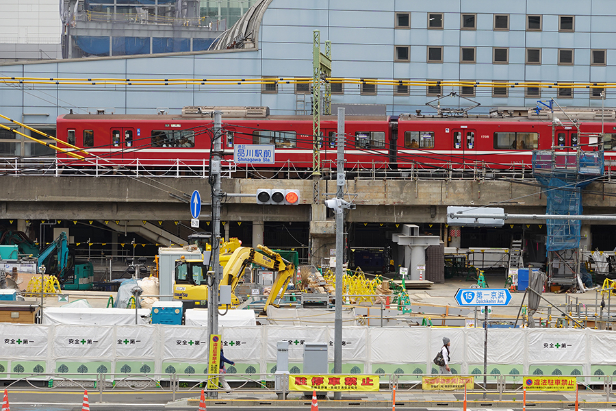 まずはSTEP1として、国道の上下線を品川駅寄り(東側)に振り向け、西側の工事を行います。その後は国道を西側に振り向け、品川駅前広場などを含めた駅寄りの工事を実施します。