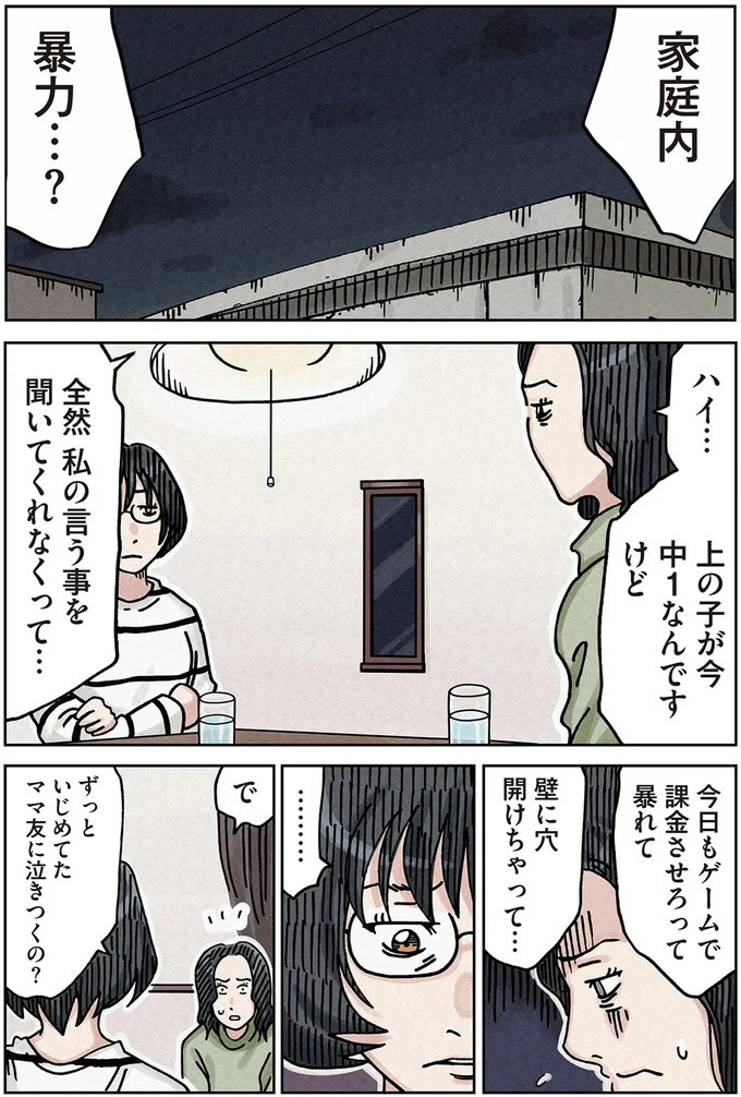 ユリは中1の上の子の家庭内暴力に悩んでいました。リゼの腕っぷしの強さを見込んでのことか、泣きついてきたのです。