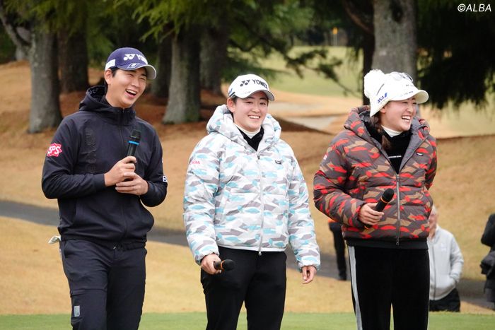 雨も寒さもなんのその。曇り空の下で、子どもたちの笑顔がはじけた。イベントの最後には岩井ツインズと鍋谷による1ホールマッチが実現。「初対面」を感じさせない軽快なトークはもちろん、プロの技を“超”至近距離で魅せた。『あきちゃん!』『ちーちゃん!』『なべちゃん!』と応援が飛び交い、フェアウェイを子どもたちと一緒に歩く。壁を感じさせないような親しみやすさに、子どもたちはすっかりプロの虜になっていた。