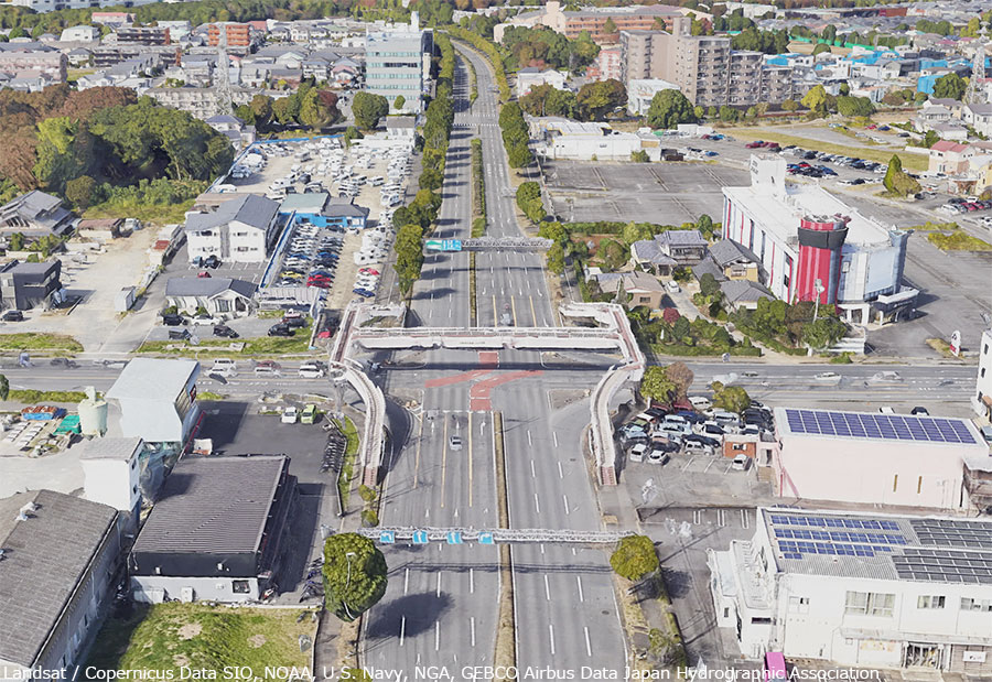 すでに沿道には商業施設が立地しており用地買収が難航しているため、県は完成年度を2023年度から2033年度まで10年延長しています。しかし、県内有数の渋滞ポイントである大角豆交差点付近については優先的に整備を進めるとしています。