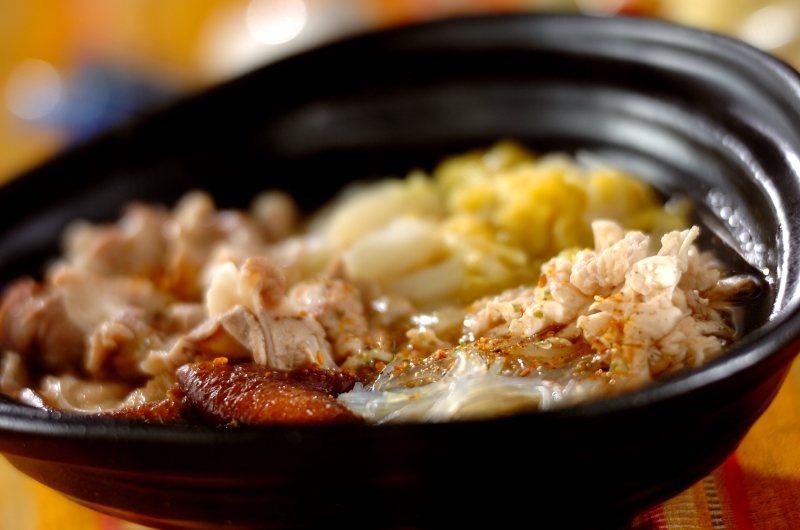 ピェンローは中国語で「鍋」という意味。干しシイタケ、豚肉、鶏肉から出ただしで、たっぷりの白菜と春雨を煮ます。