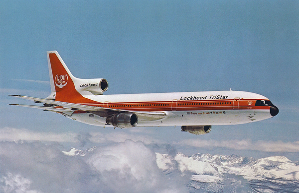 L-1011「トライスター」は1970年に初飛行した300席クラスの3発ジェット旅客機で、垂直尾翼下のエンジンに、吸気口から排気口がS字上に曲がっている「S字ダクト」が採用されていることが特徴です。国内でもかつてANA(全日空)が「トライスター」を導入し、同社初の国際定期路線(東京~グアム線)にも投入されました。一方で、製造機数は250機とヒット機とはなりませんでした。