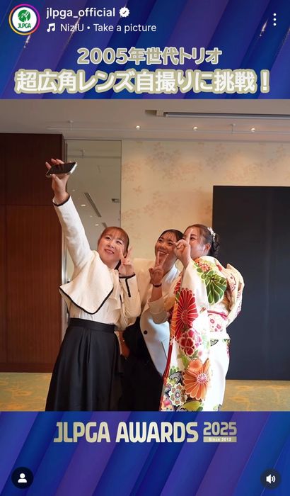 日本女子プロゴルフ協会が公式インスタグラムを更新。JLPGAアワードの会場で同級生の3人がスマホで熱心に自撮りをする姿を動画で投稿した。
