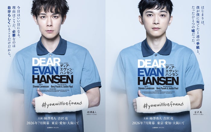 【モデルプレス=2026/01/19】俳優の柿澤勇人と吉沢亮がWキャストで主演のエヴァン・ハンセン役を務めるミュージカル「ディア・エヴァン・ハンセン」が、7月25日より東京・EX THEATER ARIAKE(東京ドリームパーク内)にて上演される。この度、キャスト16人の扮装ソロビジュアルが解禁された。 【写真】吉沢亮、色っぽさに刺激受けた年下俳優 ◆「ディア・エヴァン・ハンセン」キャスト16人の扮装ソロビジュアル解禁 2016年にニューヨーク・ブロードウェイで上演されるやいなや社会現象となり、チケットが連日完売したミュージカル「ディア・エヴァン・ハンセン」が、日本版演出で7月に上演される。エヴァン・ハンセン役を務める柿澤と吉沢は、両者ともにブロードウェイで本作を観劇。日本版への出演を強く望んでいたことから、今回の出演が決定した。この度、キャスト16人の扮装ソロビジュアルが解禁された。 ◆ミュージカル「ディア・エヴァン・ハンセン」とは 本作は、社交不安障害を抱え孤独な日々を送る高校生エヴァンが、クラスメイトの死と、とっさについた嘘をきっかけに、本当の自分と向き合っていく姿を描く物語。キャッチーで心を揺さぶる楽曲の数々とともに、1人の青年の孤独や葛藤を繊細に描き出す。 また、エヴァンの母親・ハイディ役を安蘭けいと堀内敬子、エヴァンが心惹かれるゾーイ役を木下晴香と松岡茉優がそれぞれWキャストで演じるなど、人気と実力を兼ね備えたキャストが集結。さらに、登場人物の内面を象徴する“影”をダンサーが演じる演出も取り入れられ、観るたびに新たな発見と高揚感を得られる舞台となる。 本作の作詞・作曲は映画「ラ・ラ・ランド」「グレイテスト・ショーマン」などを手がけたベンジ・パセックとジャスティン・ポール、脚本はスティーヴン・レヴェンソンが担当。日本版演出は、第25回読売演劇大賞優秀演出家賞を受賞し、数々の舞台・ミュージカルで注目を集める小山ゆうなが務める。 残酷で混沌としたSNS時代に、自分の居場所を切実に求める青年の孤独や葛藤、他者の悲しみを自分の物語として共有しようとする人間の心理、そして大人たちの不器用な喪失との向き合い方までを描き出す本作。豪華キャスト・スタッフとともに、日本版として新たな「ディア・エヴァン・ハンセン」が創り上げられる。(modelpress編集部) ◆東京公演チケット情報 【公演スケジュール】 期間:2026年7月25日(土)~8月23日(日)※35回 会場:EX THEATER ARIAKE(東京ドリームパーク内) 【上演時間】 3時間(休憩込み)※変更の可能性あり ◆キャスト ※各役五十音順 エヴァン・ハンセン:柿澤勇人/吉沢亮* ハイディ・ハンセン:安蘭けい/堀内敬子* ゾーイ・マーフィー:木下晴香/松岡茉優* コナー・マーフィー:立石俊樹/廣瀬友祐* ジャレッド:上口耕平/須賀健太* アラナ:高野菜々/宮澤佐江* シンシア・マーフィー:瀬奈じゅん/マルシア* ラリー・マーフィー:石井一孝/新納慎也* 尾関晃輔、澤村亮、瀬崎宙乃、十川大希、福島玖宇也、藤田実里、渡邉南 *=Wキャスト 【Not Sponsored 記事】