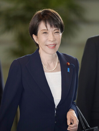 〔写真説明〕首相官邸に入る高市早苗首相=19日午前、東京・永田町