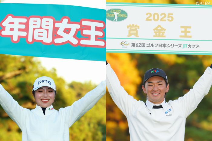 男女ツアーともに新たな王者が誕生した。シーズン4勝を挙げた佐久間朱莉が年間女王に輝き、2勝をマークした金子駆大が賞金王を獲得した。