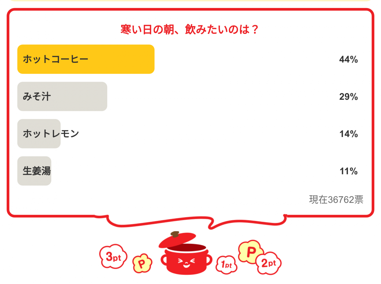 今日の質問は「寒い日の朝、飲みたいのは?」さてみなさんの回答は…?