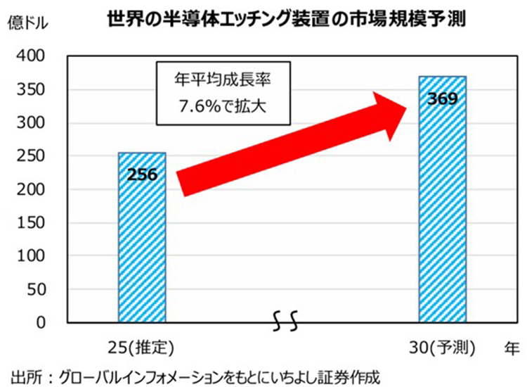 神様:グローバルインフォメーションによれば、世界の半導体エッチング装置市場は2025年に256.1億ドルと推定されています。今後は年平均成長率7.6%で拡大し、2030年には369.4億ドルに成長する見込みです。関連企業の活躍に期待しましょう。