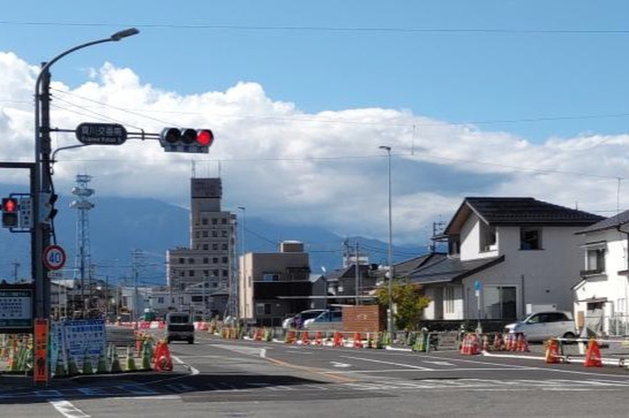 これまで2車線区間として残っていた「アルプス通り」から西側200mは、2026年1月30日(金)朝5時に開通。これに合わせてアルプス通り以東で車線を絞っていた300m区間も車線の改修が行われ、2月20日(金)朝5時に全線4車線で開通となります。