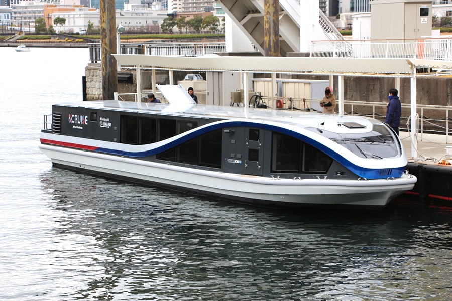 総トン数は約17トン、定員は60人。設計・建造は大洋電機で、三重県伊勢市のエルモ造船所で建造されました。運航にあたっては、商業施設「アーバンドックららぽーと豊洲」に新設された給電設備を活用する予定です。