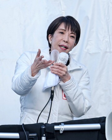 〔写真説明〕街頭演説する高市早苗首相=28日午後、札幌市手稲区
