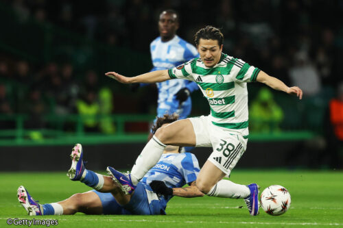 また、左ウイングとして先発した伊東純也を擁するヘンクはホームで逆転勝ちを収め、9位でプレーオフに進出。第2戦をホームで戦えるシード権を手にしている。前田大然が先発し、旗手怜央が出場停止だったセルティックもホームで勝利を収め、21位でプレーオフに滑り込んだ。センターFWの位置に入った前田は攻守に奮闘し、オウンゴールも誘発。チームが4点目を奪った直後にお役御免となった。