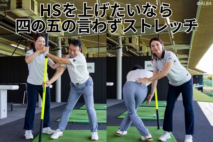 川満:第4位になったのは、ストレッチ。なんと平均HSが2.1m/s上がり、41.9m/sを記録しました。多くのアマチュアゴルファーは背中やお尻の筋肉が硬くなっています。これがヘッドスピードが上がらない大きな原因です。体の背面が硬いと体を使って振れなくなるし、捻転のないスイングになってしまうんです。壁やポールを使って、肩甲骨、お尻、裏モモ(ハムストリング)を伸ばすとヘッドスピードアップにつながります。