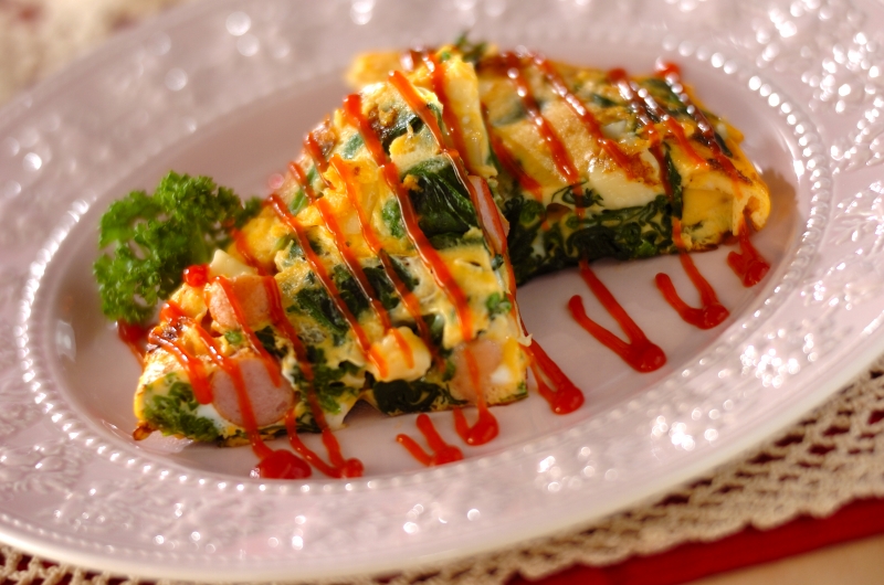 【主菜】ソーセージとホウレン草入りオムレツ