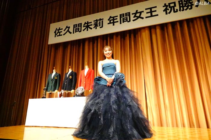 昨年4勝を挙げ、プロ5年目にして年間女王に輝いた23歳・佐久間朱莉の祝勝会が、13日に都内で行われた。会場にはスポンサーをはじめ、家族や関係者が集まった。