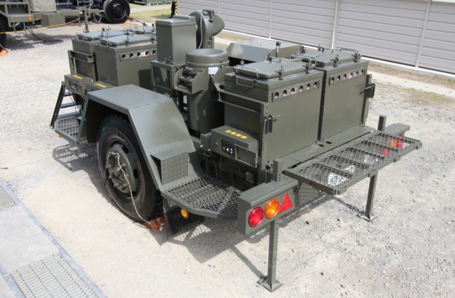 2011(平成23)年度に陸上自衛隊で装備化されたこの野外炊具1号(22改)は、けん引式の1トントレーラーに炊飯器6台と調理器を搭載したフィールドキッチンで、最大で200人分の主食及び副食を45分以内に調理することが可能です。