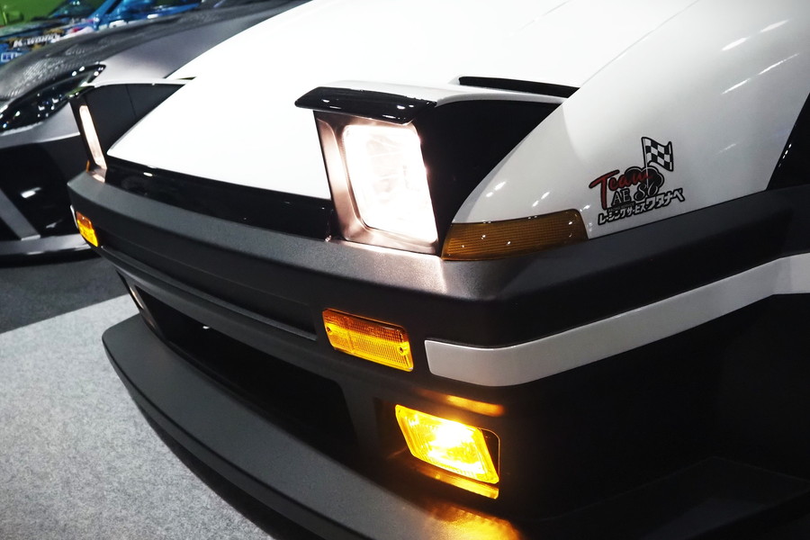 NEO86は、カスタムパーツを手掛ける大阪府のResult-Japan(リザルトジャパン)が製作したカスタムカーです。バンパーやフェンダーなどにはAE86風のパーツキットが装着されているほか、ヘッドライトはトレノのリトラクタブル式を思わせる、角型2灯に置き換えられています。また、展示車両はAE86独特のボディカラーである白と黒のツートンに塗装されており、多くの来場者から注目を浴びました。
