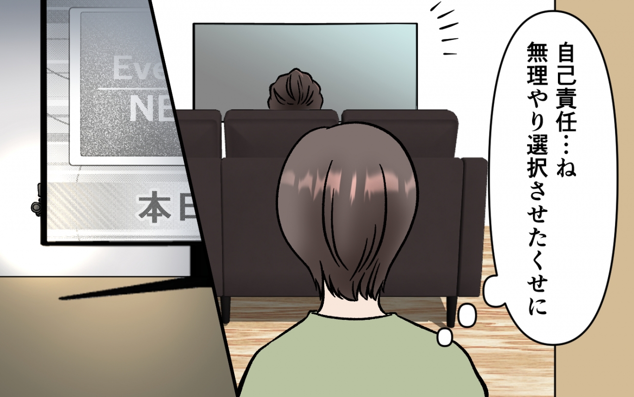夫「ご飯作るって言ったのは自分でしょ?自己責任だよ」妻「作れって言ったのはそっちでしょ?」選択を迫る夫が豹変した瞬間 2026年2月3日 22:05 ウーマンエキサイト 中 大 製薬会社の「花形」大幅に減少 怖すぎる…!! いわゆる二者択一法ですよね。「やらない」という選択肢がない… 選択肢といいつつ実際にはなにも選ばせてくれない夫。 これは証拠を集めてとっとと逃げたほうがいいですね。 【まんが】選択を迫ってくる夫の末路 関連記事【まんが】選択を迫ってくる夫の末路「ありがとう…お母さん頑張るから」息子に伝えて早速行動!夫が寝ている隙に…【宝くじで3億円当たりました Vol.121】もう言い逃れできない…後輩のただならなさを示す証拠動画の撮影に成功!【年下の同僚からフキハラされた話 Vol.133】「言えなくさせていたのは俺だった」諦めずに話し合う努力を選んだ夫婦の未来は【妻が不機嫌なワケ 第10話】「ママは俺たちを置いてお出かけだってよ〜」妻の外出で不機嫌になる夫の心理とは?