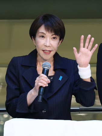 〔写真説明〕演説する高市早苗首相(自民党総裁)=1月31日、川崎市