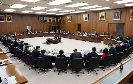 〔写真説明〕「今後の議論の方向性」をテーマに討議が行われた衆院憲法審査会=2025年12月、国会内