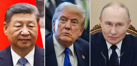〔写真説明〕写真左から中国の習近平国家主席、トランプ米大統領、ロシアのプーチン大統領(EPA時事)