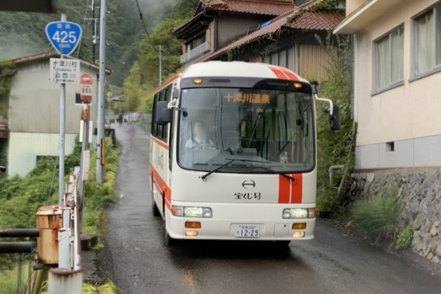 また、ツアー中には十津川村営バスの「西川線」にも乗車します。この西川線が走る国道425号は、狭く険しい“酷道”であることから「日本三大酷道」のひとつにも数えられています。終点の迫西川にある、崖にせり出したバス駐車場は「天空の駐車場」としてファンにも有名だそうです。