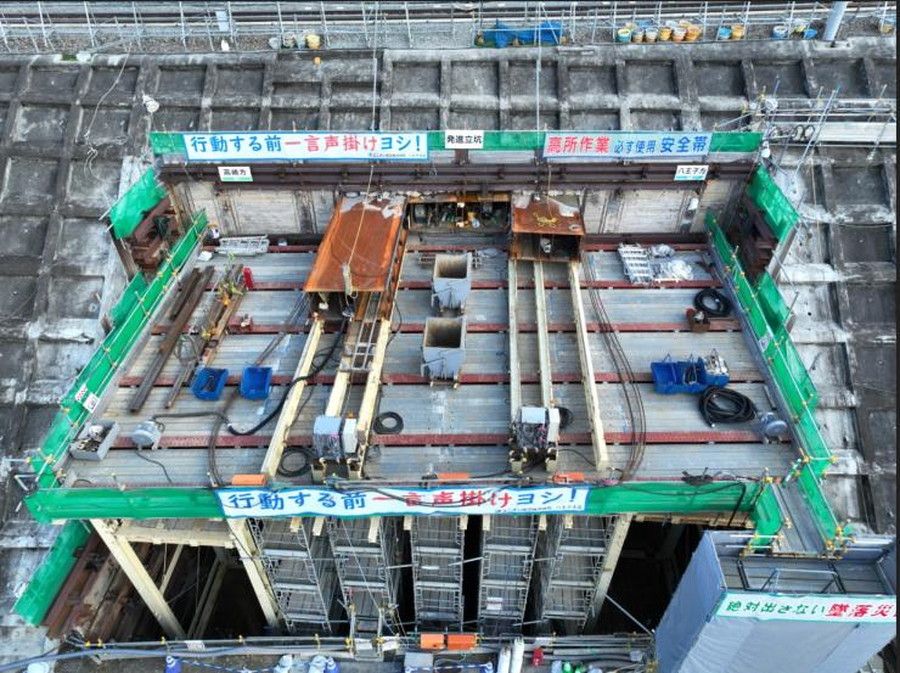 実際の工事作業は、まず拡幅されるサイズまでガードの内部を掘削し、そこに仮設構台を構築して築堤を支えながら、ガードの内壁(エレメント)を構築していく手法が採られています。2025年11月には仮設構台を上空からドローンで撮影した写真が公開されており、拡幅作業が本格化している様子が確認できます。また、2026年1月には内壁の上側部分を設置する工事が完了。今後は側面部の構築が進められる見通しです。