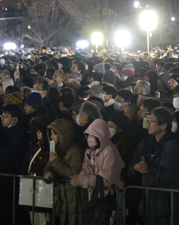 〔写真説明〕衆院選の「最後の訴え」に耳を傾ける有権者=7日夜、東京都世田谷区
