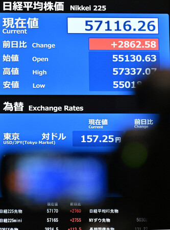 東京株、一時5万5000円超=取引中の最高値更新 2026年2月9日 9:07 時事通信社 中 大 製薬会社の「花形」大幅に減少 週明け9日の東京株式市場は、衆院選の自民党圧勝を受けて買いが広がり、日経平均株価は5万5130円63銭と取引時間中の最高値を更新して始まった。