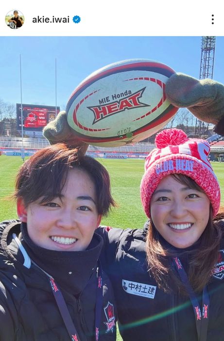 岩井明愛が自身のインスタグラムを更新。ジャパンラグビーリーグワンに所属する三重ホンダヒートの試合を妹・千怜とともに初めて観戦したことを投稿した。