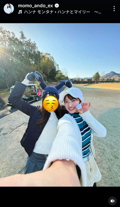 投稿では会心のティショットにカメラを振り向いてピースをする姿や、ボールを頬に当てて友人と笑顔の2ショットなどを1本の動画にまとめた。