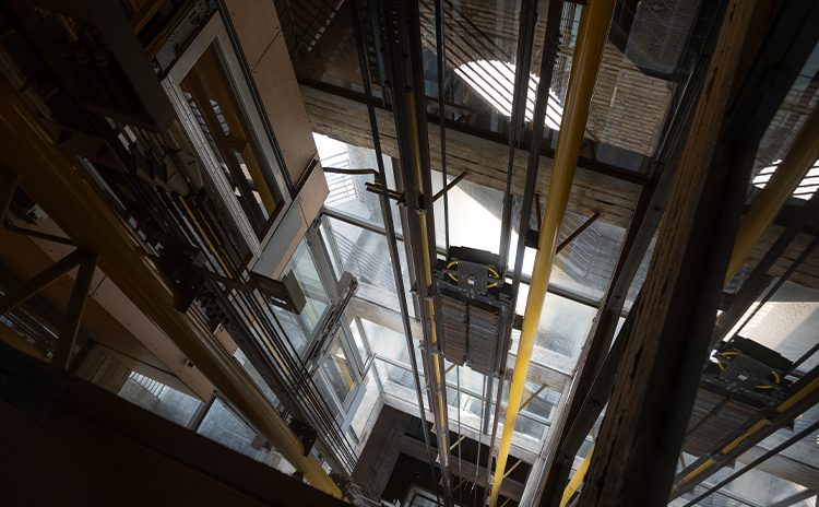 神様:エレベーター全体ではロープ式の数が圧倒的に多く、1970年当初もロープ式でした。しかし1980年を過ぎたころから油圧式エレベーターの設置が増えてきました。ロープ式エレベーターはかごを動かす機械を置く機械室が必要で、屋上に機械室を設置する必要がありました。一方で、油圧式エレベーターは屋上に機械室を設置する必要がなく、機械室の場所を比較的自由に決めることができました。低層階ビルや公共住宅を中心に、油圧式エレベーターの設置が進みました。しかし、その後機械室がいらないロープ式エレベーターが登場し、現在は新規で油圧式エレベーターが設置されることはほとんどなくなっています。