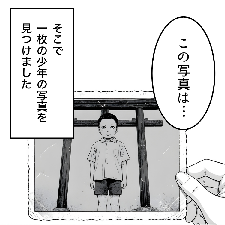 それは、鳥居の前にたたずむ少年の写真でした。