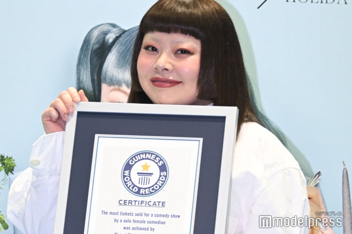 【モデルプレス=2026/02/11】お笑い芸人の渡辺直美が2月11日、東京ドームにてコメディショー「渡辺直美 (20) in 東京ドーム」を開催し、イベント直後に囲み取材を実施。同公演がギネス世界記録に認定されたことを受けて、認定証を受け取った 【写真】渡辺直美、東京ドーム公演直後の姿 ◆渡辺直美、ピン芸人史上初の東京ドーム公演がギネス世界記録に認定 渡辺は昨年、日本にてコントライブ全6公演を実施し、その終了後に東京ドーム公演の開催を発表。ピン芸人の東京ドーム公演は初となり、渡辺はピン芸人で初めて東京ドーム公演を完売させた。ショーの内容としては、渡辺の芸能人生20年をミュージカルやコントで振り返り、ビヨンセやレディー・ガガのパフォーマンスも披露。ラッパーの千葉雄喜とのコラボレーション楽曲も発表した。 同公演は「女性ソロコメディアンによるコメディーショーで販売されたチケットの最多枚数」としてギネス世界記録に認定。40,000枚を超えなければならないところ、44,356枚の販売枚数を記録したといい、公式認定員から公式認定証を手渡しされた。 ◆渡辺直美、40周年の58歳でもビヨンセ? ギネス世界記録の公式認定証を受け取るのは今回が初めてだといい「ギネス持ってたらいいなって思ってたんですけど、まさかこんな素敵な、芸人にとってもありがたきギネスをいただきました。とってもハッピーハッピーです」と笑顔で受賞に喜び、「この記録をいつか自分で塗り替えられるように、今後とも頑張っていきたいと思います」と今後の活動に意気込み。次の目標についての質問には「東京ドームでもう1回できたらいいな」と、今回の公演にも改善点があったと悔しい表情。「例えば次の40周年の時とかに、もっと大きいところできたらかっこいいなと思いますけど」とさらなる希望を述べたが、「多分もうビヨンセできないと思うんすよ、私58歳ですから、見てる側も『大丈夫?』みたいなってなっちゃうと思いますが、でもそれまでに体を鍛えて、もっと大きいところでやりたいなと思ってます」と58歳でのビヨンセのパフォーマンスに期待を寄せた。(modelpress編集部) 【Not Sponsored 記事】