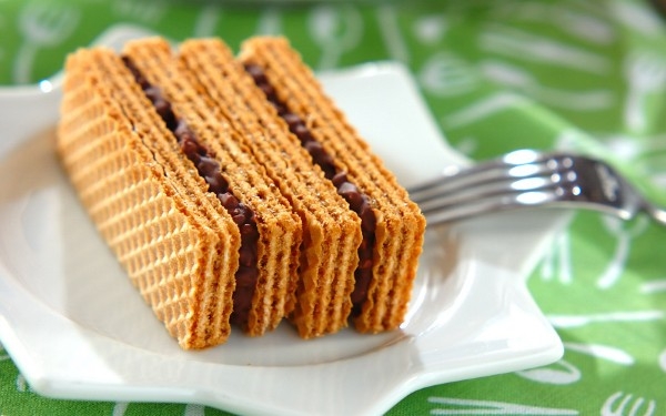 市販のウエハースにアーモンドダイス入りのチョコレートを塗り、もう1枚のウエハースではさめばOK。サクッ&パリッとした食感でしっかりと食べ応えがあります。何段か重ねてミルフィーユのような見た目にしても良いですね。