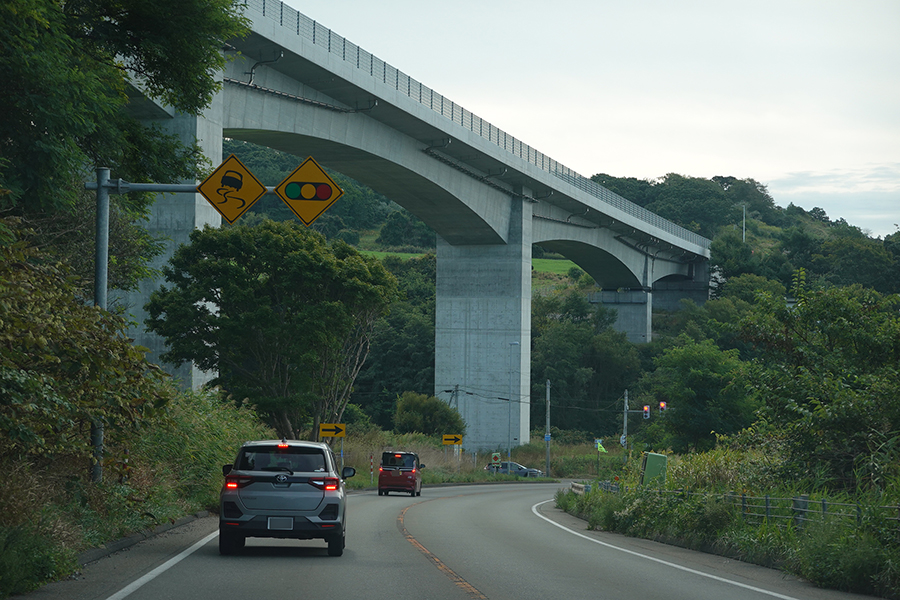 また、この区間では2021年に廃止された旧JR日高本線が最も海側を、並行する高台を国道235号が走っていますが、国道も苫小牧市~浦河町間の約7割が津波浸水想定区域になっているといいます。日高道は国道よりもさらに高い丘陵地を通り、深い谷を高架橋でまたいで津波浸水区間を回避しています。