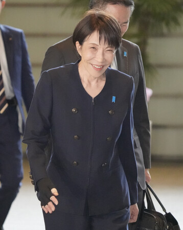 〔写真説明〕首相官邸に入る高市早苗首相=13日、東京・永田町