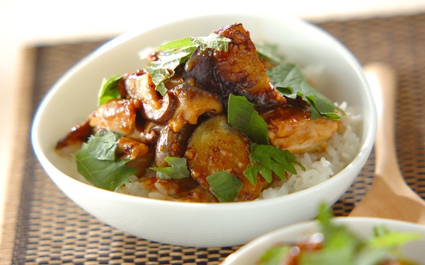 こっくりとしたみそ味が食欲をそそる、スタミナ満点の炒め丼です。ショウガの香りと赤唐辛子のピリッとした刺激が、ナスの甘みを引き立てます。仕上げに大葉をたっぷり散らせば、濃厚な味わいの中に爽やかな風味を感じ、最後まで飽きずに楽しめます。