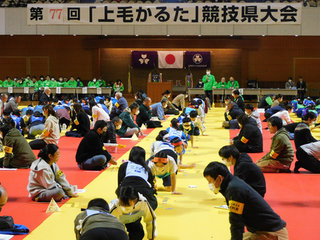 小中学生による群馬県の郷土かるた「上毛かるた」の競技大会が前橋市内で開かれた。77回目の今回、小学校低学年と高学年、中学生の各部門の団体戦の優勝チームにそれぞれ100万円分の賞品が贈られる。県の担当者は「目標をつくって子どもがかるたをするきっかけになればいい」と話した。
