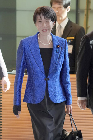 〔写真説明〕首相官邸に入る高市早苗首相=19日午前、東京・永田町