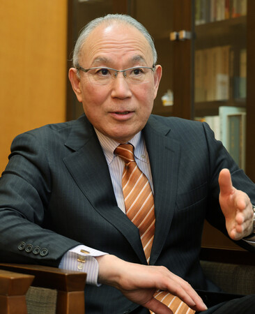 〔写真説明〕インタビューに答える松田邦紀前駐ウクライナ大使=19日、東京都中央区