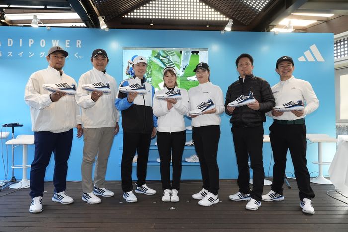 3日、千葉県の千葉バーディクラブで、アディダスジャパン主催の『SS26 ADIPOWER メディア イベント』が開催された。イベントには同社の代表取締役の・萩尾孝平氏、ゴルフBUヘッド・和田貢一氏、プロダクトマーチャンダイジングアシスタントマネージャーフットウェア・森悠馬氏などが出席し、新作シューズを発表。ドラコンプロや元野球選手らも参加し、会場は大いに盛り上がった。