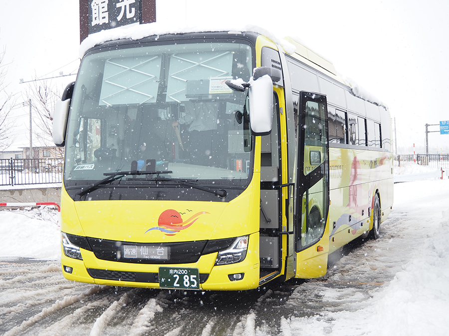 立ち寄った鶴岡市のレストランの店員に状況を話すと、「高速バスならば、この雪でも絶対に走るはずですよ」と耳打ちしてくれました。それが夕陽号のことで、“最強伝説”は地元でも知れ渡っているようです。