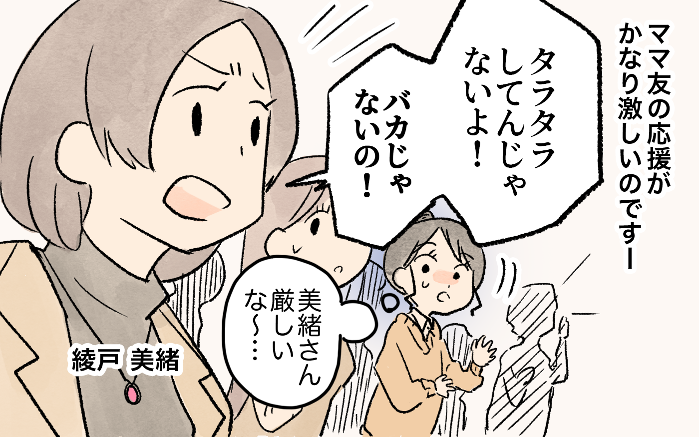「タラタラしない!」子どものサッカー応援がキツいママ友に物申せる!? 夫登場で本性バレバレ? 2026年2月23日 23:05 ウーマンエキサイト 中 大 プライベートブランド需要に注目 息子だけでなく旦那さんにもこの態度? せっかく迎えに来てくれたのに… 見ていて気持ちがいいものではありませんが、人の家庭のことって口出ししにくいですよね。 どうしたものかと考えていると、一緒に食事へ行くことになり…!? 【まんが】ママ友の応援が怖い 関連記事【まんが】ママ友の応援が怖い「うまく切り抜けたわね?」って…義姉の親切の裏側が見えてきた!【兄夫婦が私の財布を狙ってる 第3話】「頼む!娘が心配だから近くに住んでくれ!」子離れできない義父からのお願いを受け入れたら…根も葉もない噂に我慢の限界! 娘を守るため動き出す!!【開示請求待ったなし Vol.6】「俺の母さんは完ぺきなんだ!君も見習ってね」母自慢が止まらない夫…義母の本性分かってる!?
